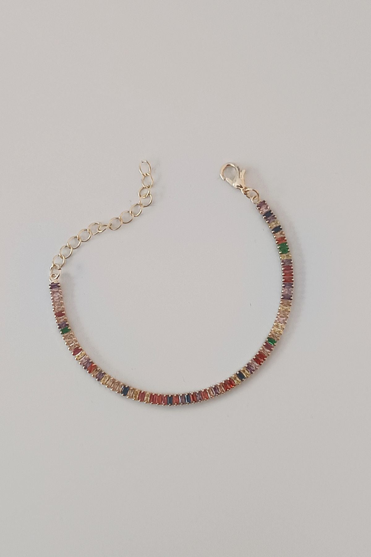 Fargerikt tennisarmbånd i stål – justerbart 15+5 cm – baguette-steiner