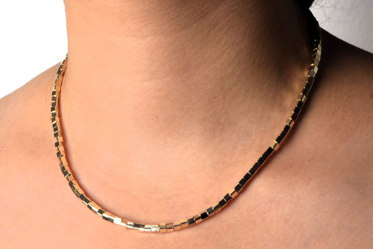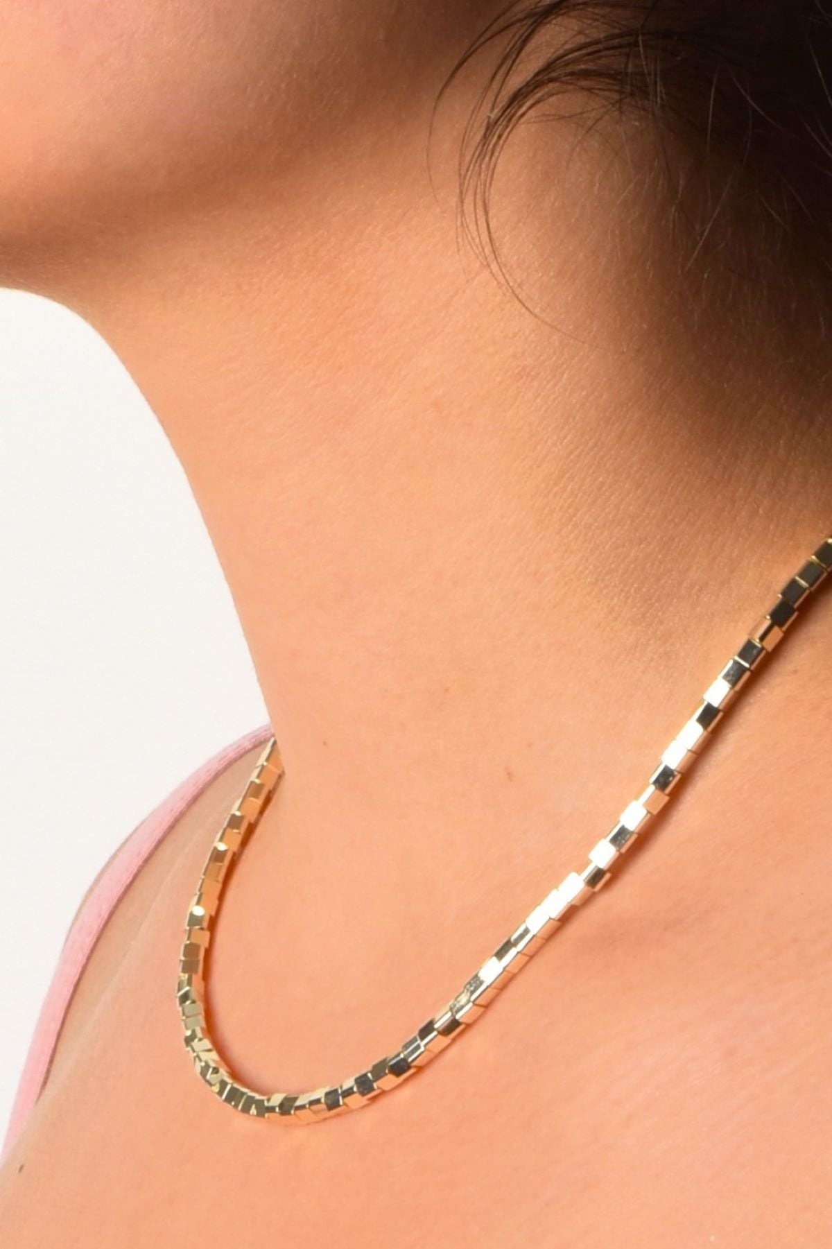 Zenia gullfarget kjede, 40 cm + 5 cm, er et stilig stålsmykke som kombinerer enkelhet og eleganse. Perfekt for både hverdagsbruk og spesielle anledninger, denne kjeden legger til et snev av raffinement til ethvert antrekk.